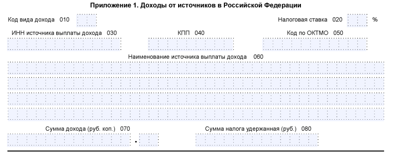 Для заполнения Приложения 1 потребуются данные о доходах и суммах налога физлица. Эти данные можно запросить в виде справки у работодателя или посмотреть в личном кабинете налогоплательщика на сайте ФНС.