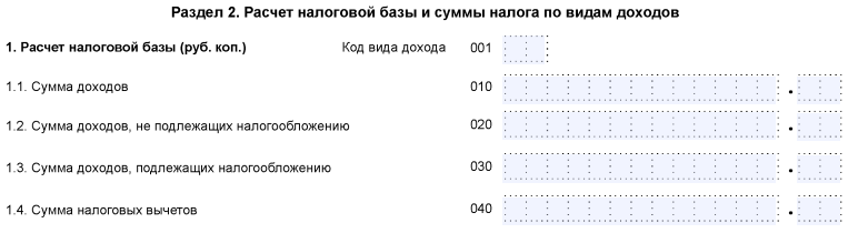 Далее в разделе 2 потребуется внести сведения для расчета налоговой базы и НДФЛ.