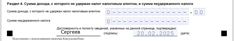 Раздел 4 справки заполняется в случае, когда физическое лицо получало доход, с которого налог не был удержан.